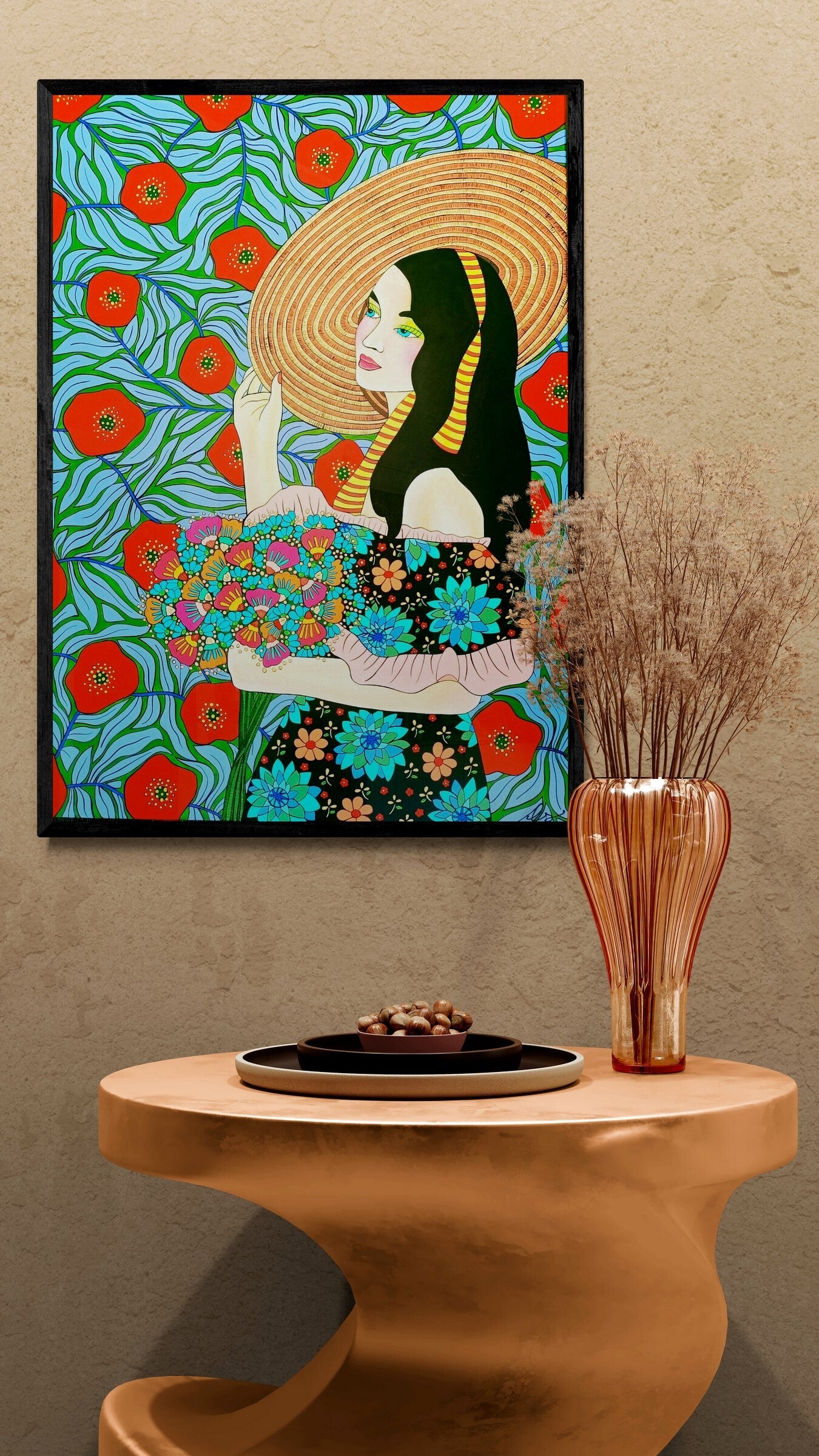 Je choisis mes sujets et thèmes en laissant mon imagination vagabonder. Une image se forme dans mon esprit et je m'efforce de la retranscrire sur la toile en mêlant folklores, cultures du monde, animaux et fleurs. Mes tableaux sont mon refuge, un endroit où le monde est presque parfait, où nous sommes tous unis au-delà du temps.
